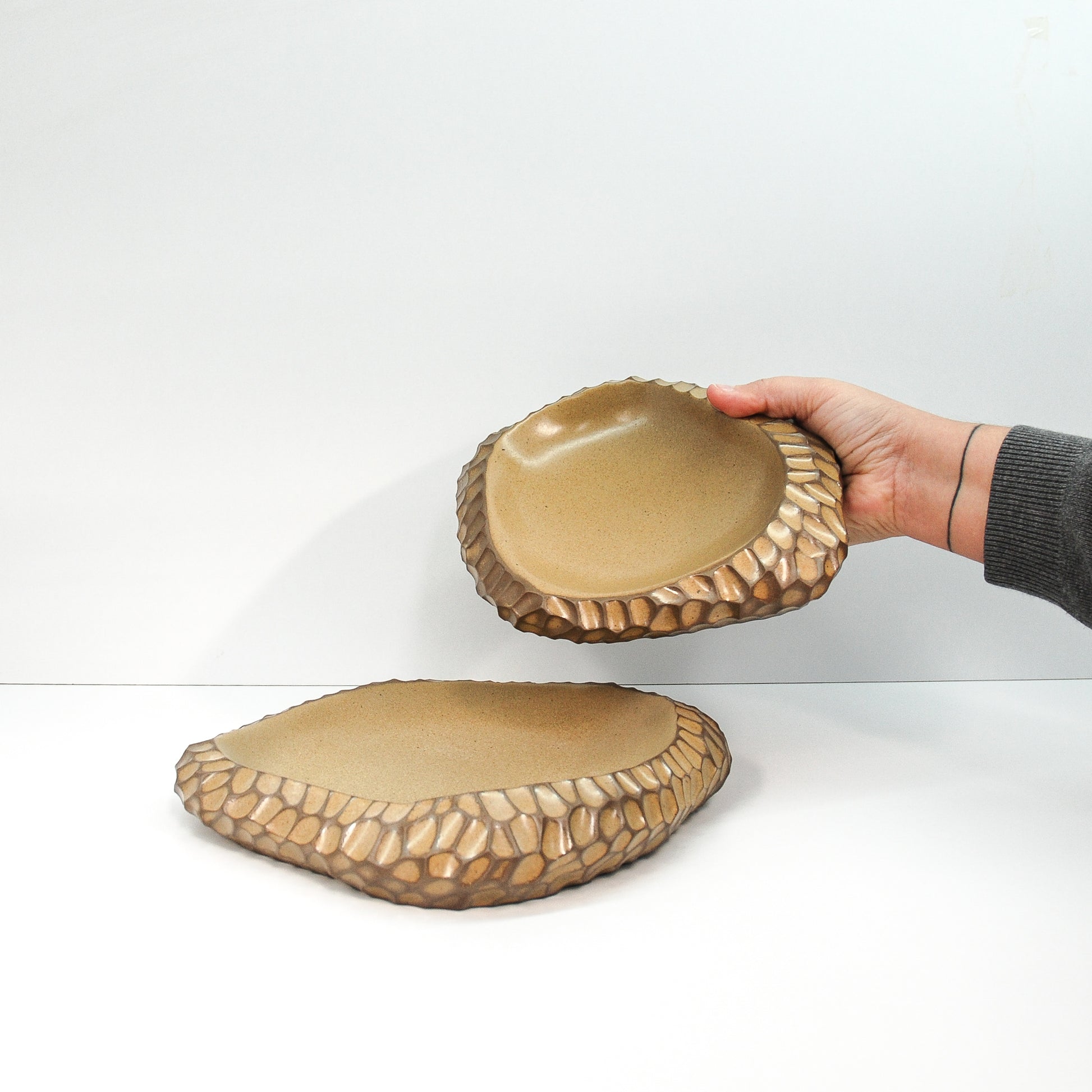 These marks make our plates and glasses unique and special. When you order, you will receive a selection with the tone and texture in the image, but it will not be exactly the same. We hope you love and adopt these special products as much as we do. We will be happy to help you with images so you can choose the product you want.
